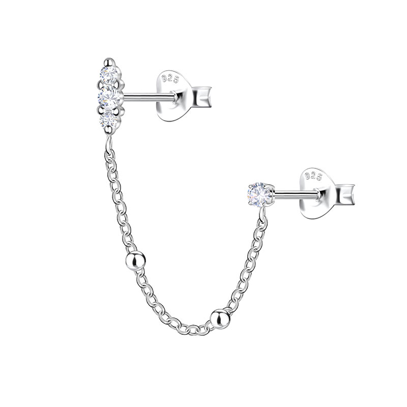 Τα Silver Double Stud Earrings with Ball Chain – White είναι ένα μοντέρνο και κομψό ζευγάρι σκουλαρικιών που συνδυάζει minimal αισθητική με ιδιαίτερο design. Κατασκευασμένα από ασήμι 925, διαθέτουν διπλό καρφωτό στοιχείο που συνδέεται με λεπτή αλυσίδα μπίλιας (ball chain), δημιουργώντας ένα εντυπωσιακό layered αποτέλεσμα.