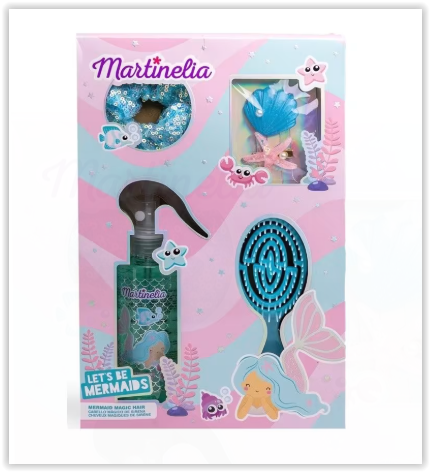 LET’S BE MERMAIDS MERMAID Magic Hair by FOLIA COSMETICS – παιδικό σετ δώρου που περιλαμβάνει 100ml conditioner μαλλιών χωρίς ξέβγαλμα, 1 βούρτσα, 1 λαστιχάκι μαλλιών με παγέτες και 2 κοκαλάκια μαλλιών.