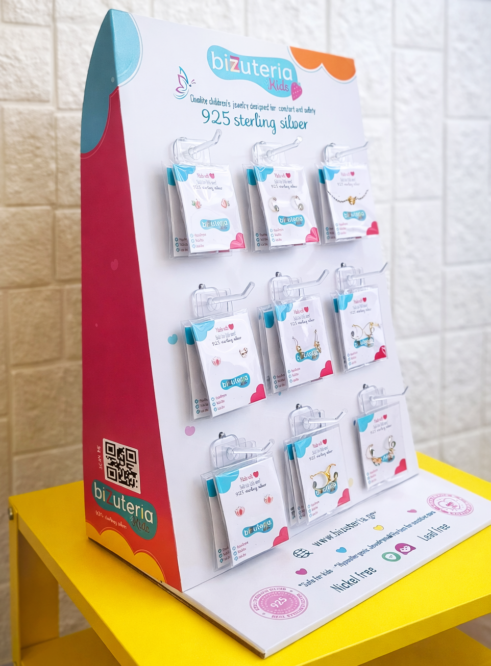 Σταντ προβολής προϊόντων. Με 18 διαφορετικά σκουλαρίκια για τους μικρούς μας φίλου. Επιλεγμένα από εμάς